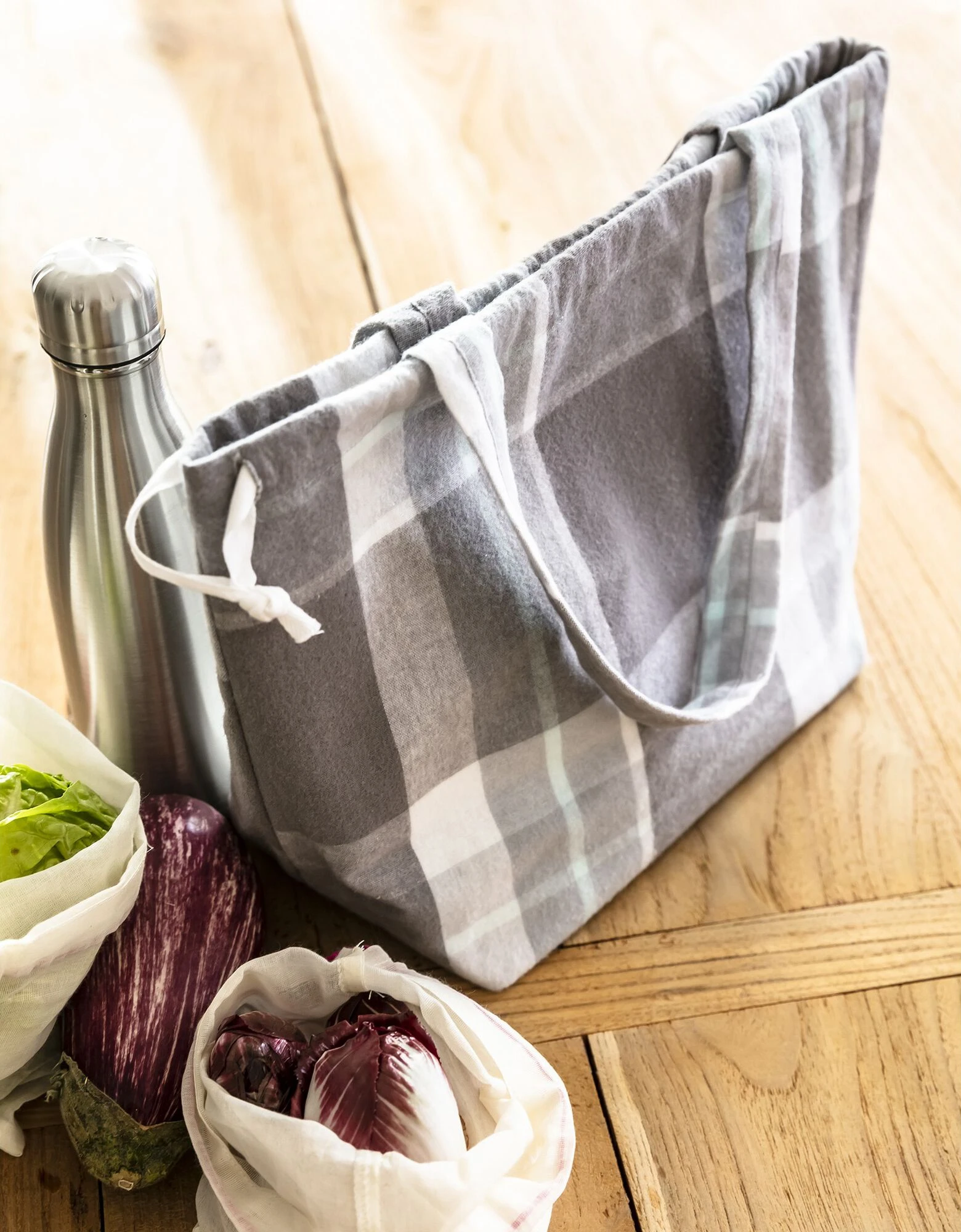 – ExtĂ©rieur issu de notre collection de linge de lit en flanelle, carreaux en tissĂ© teint
