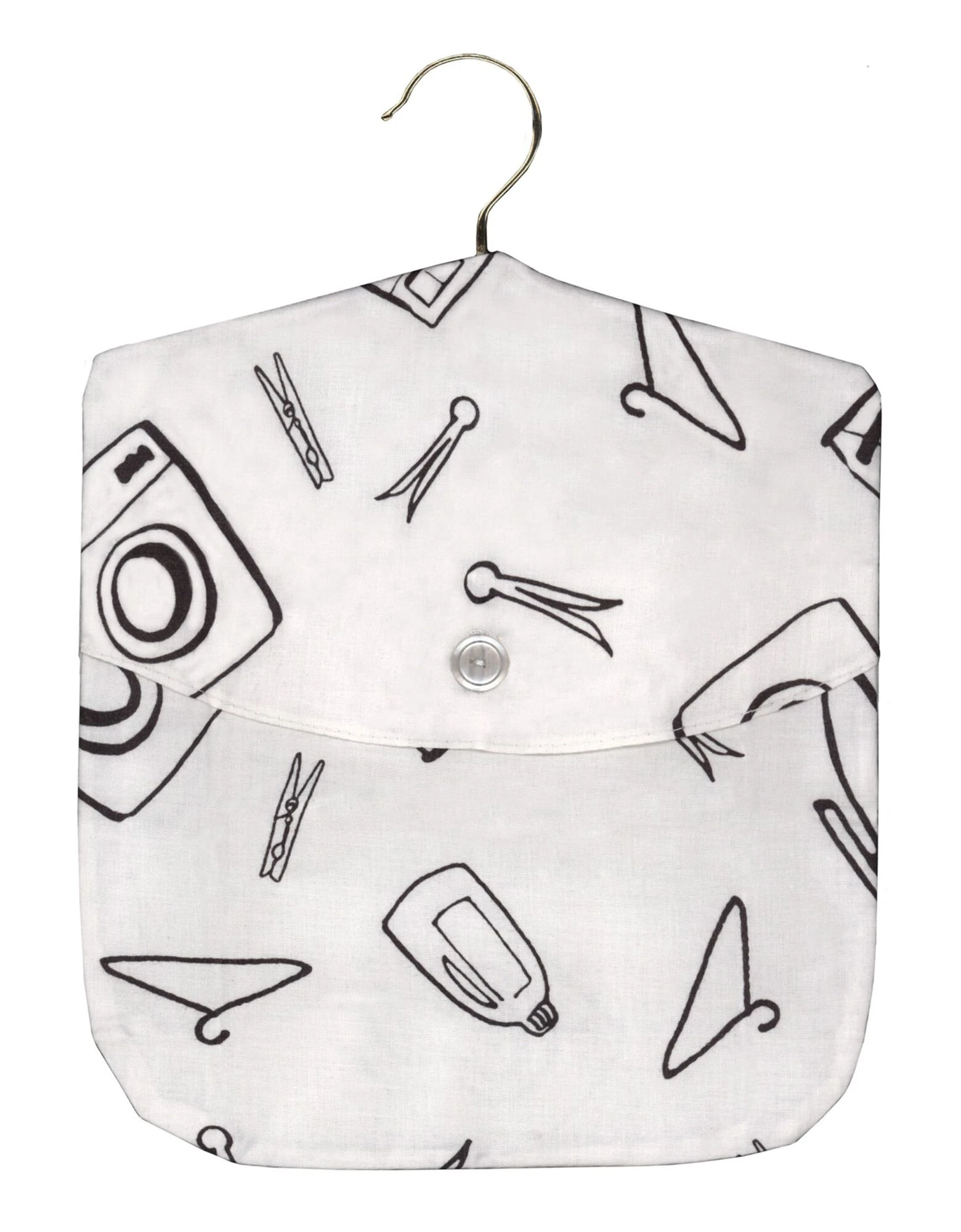 Pratique, ce sac à pinces s’accroche directement sur votre séchoir-étendoir grâce au cintre intégré. Vous n’aurez plus qu’à vous servir… sans même devoir vous baisser !