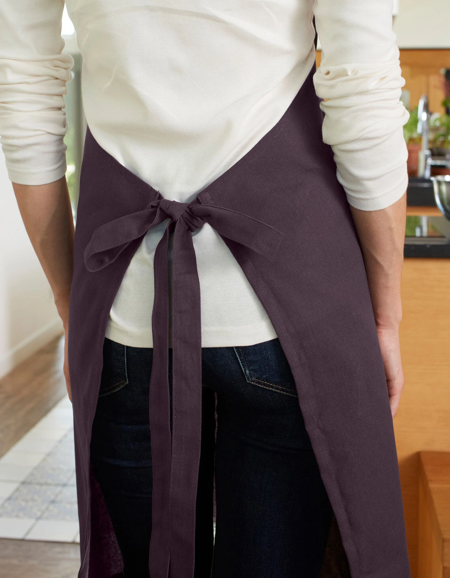 – Tablier bavette avec bretelle rĂ©glable autour du cou et anneau mĂ©tal