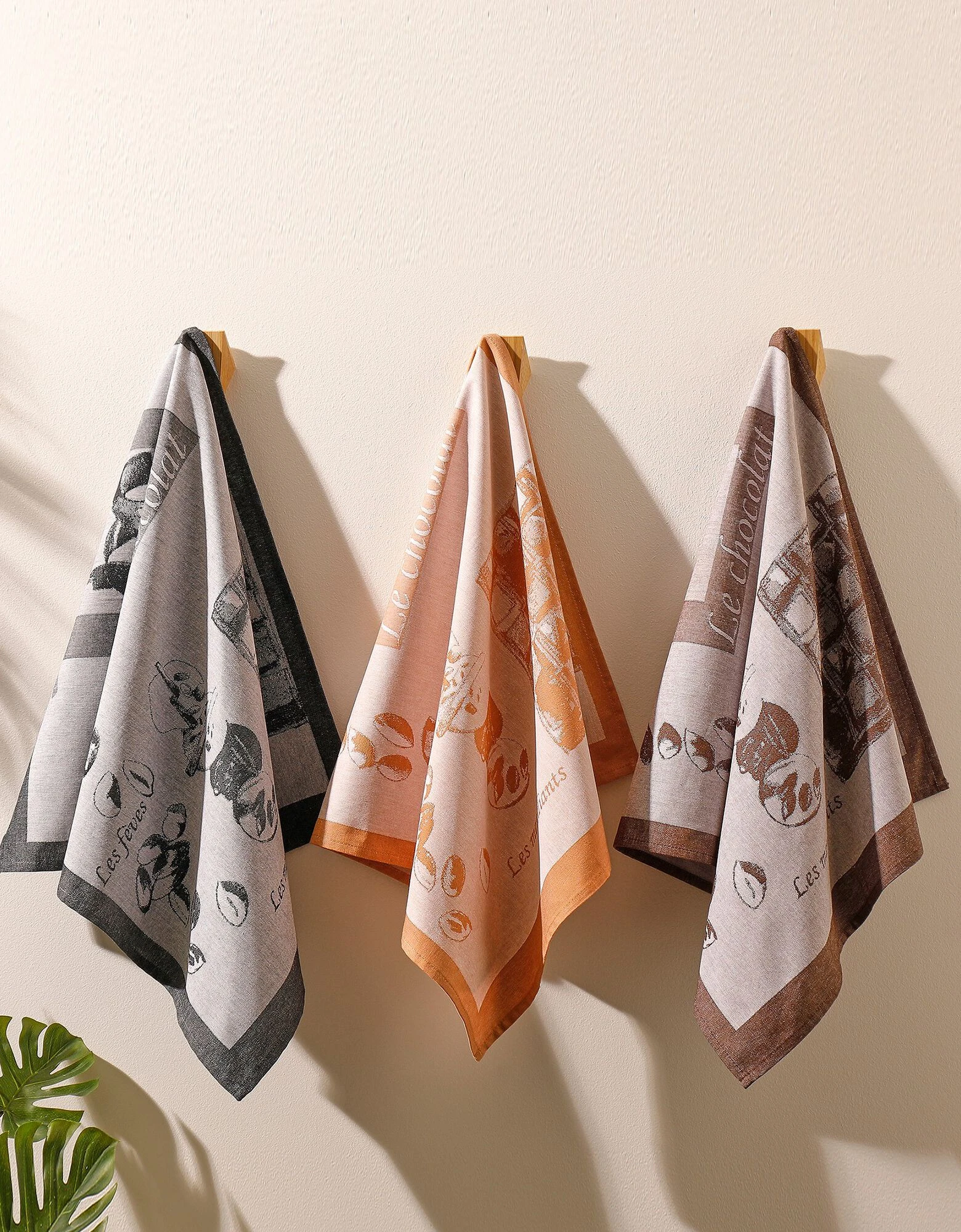 ∙ Lot de 3 torchons en jacquard motifs gourmand : ocre + marron + gris