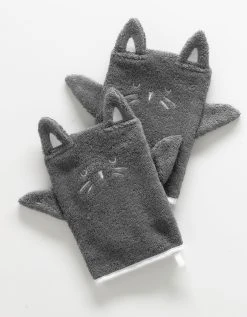 – Lot de 2 gants de toilette “marionettes” 15×21 cm avec oreilles et broderies