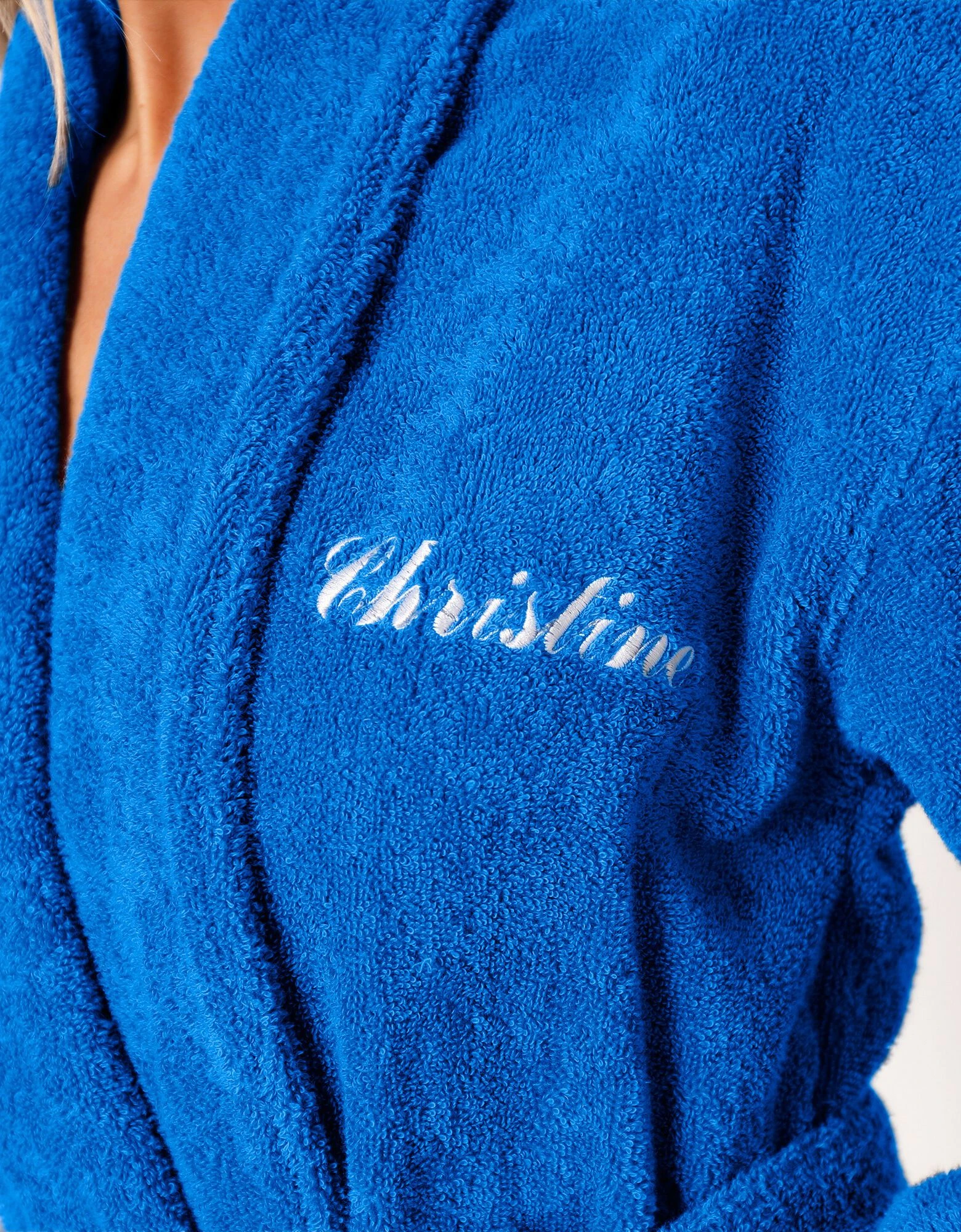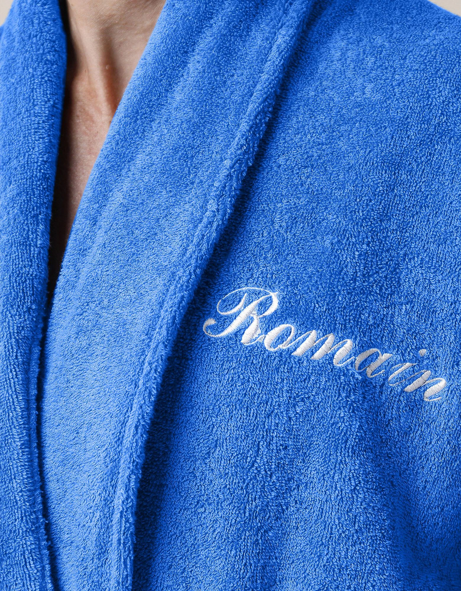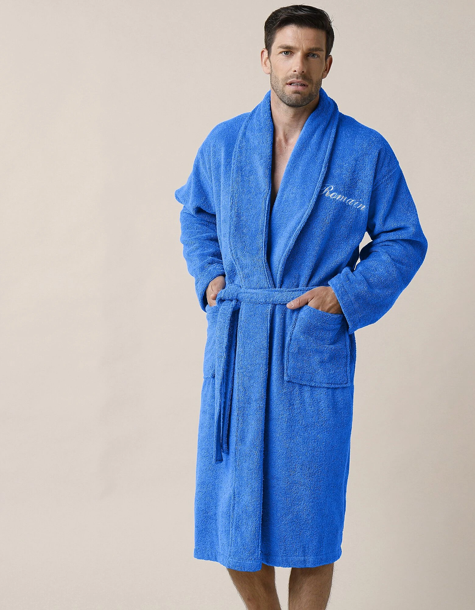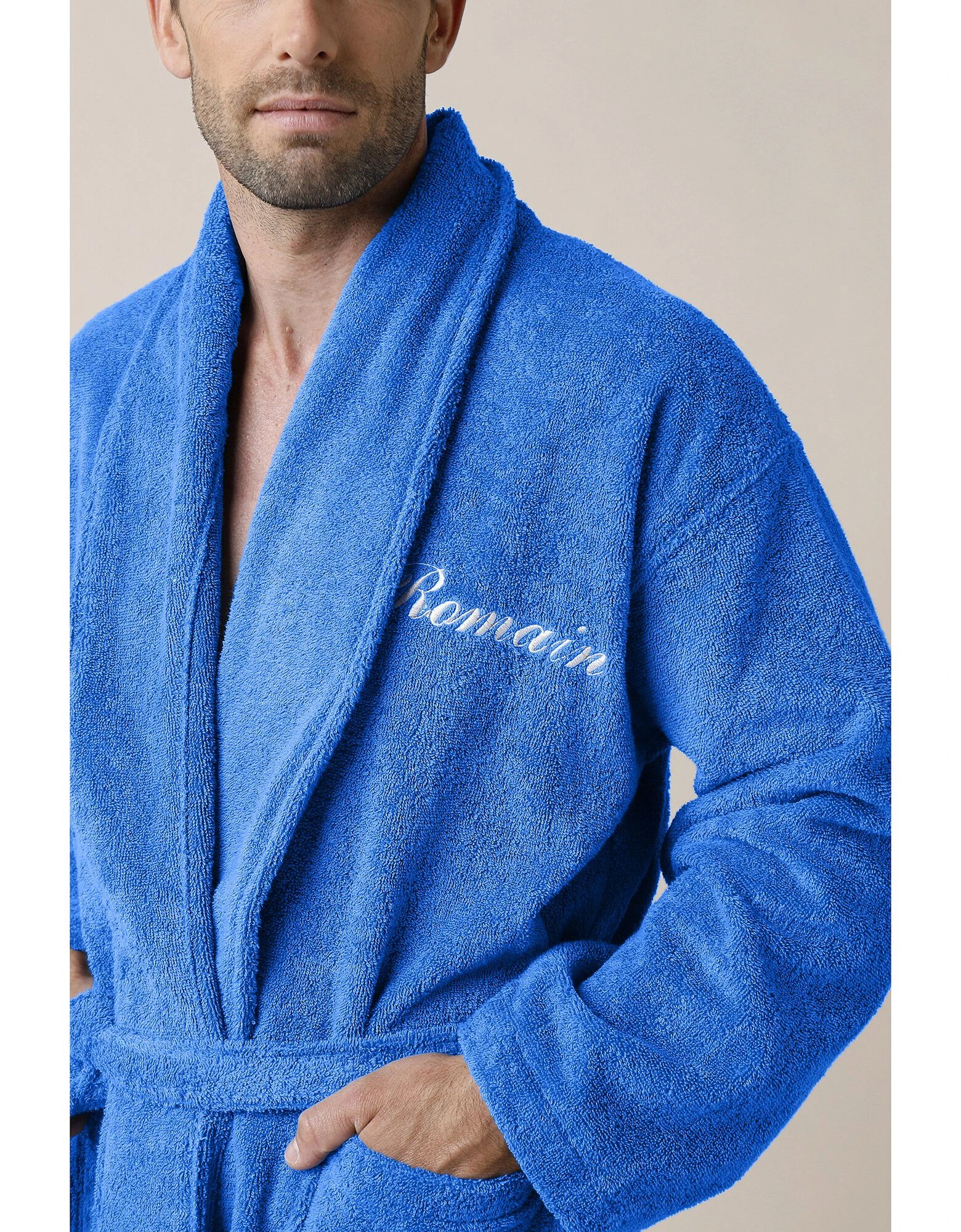 – Peignoir personnalisable avec un style d’écriture et une couleur associés au coloris choisi